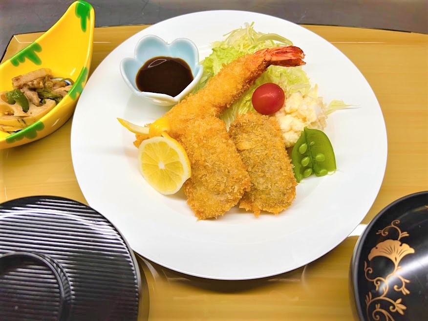 大きな海老フライとヒレカツが両方楽しめるお得な一皿。
